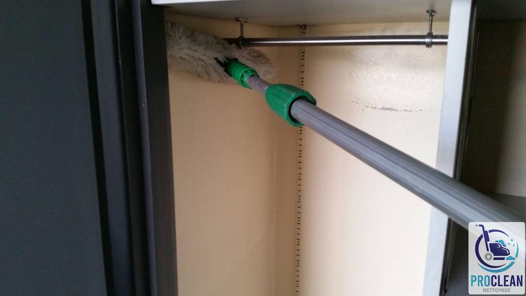 - Dépoussiérage humide des dessus de bureaux : Les bureaux, étagères et autres surfaces sont soigneusement dépoussiérés avec des lingettes humides pour éviter la dispersion de particules dans l'air et maintenir une propreté constante.